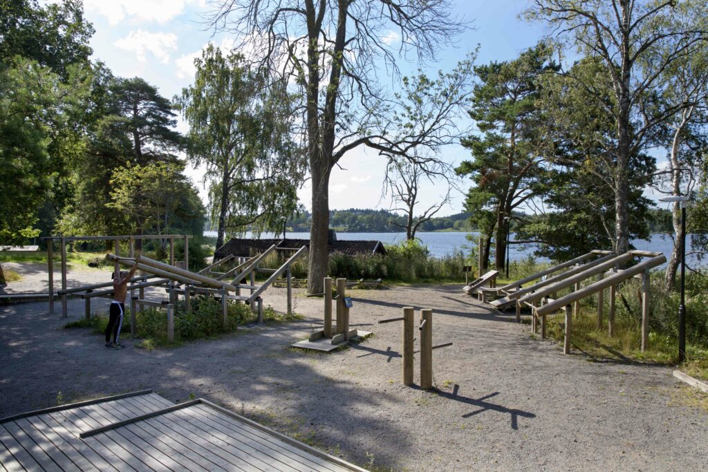 Precis vid Sköndalsbadet och utomhuspoolen finns ett utegym. Det är anpassat för alla oavsett ålder, kön och eventuella funktionshinder. Med utsikt över Drevviken kan du träna hela kroppen, vare sig du kommer till fots eller på hjul. Gymmet sköts av Stockholms stad.